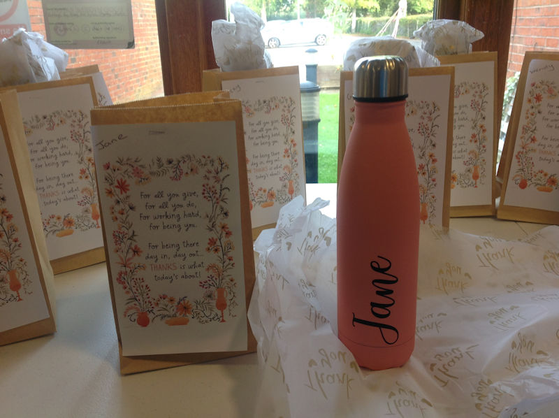 “For all you give, for all you do, for working hard, for being you. For being there day in, day out…..THANKS is what today’s about!”.